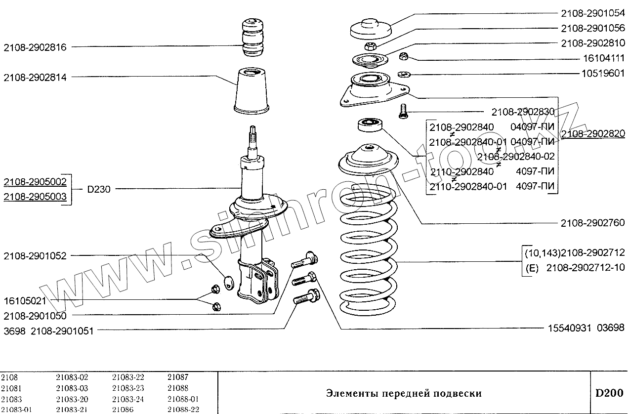 Каталог запасных частей к технике: ВАЗ-2108. Элементы передней подвески
