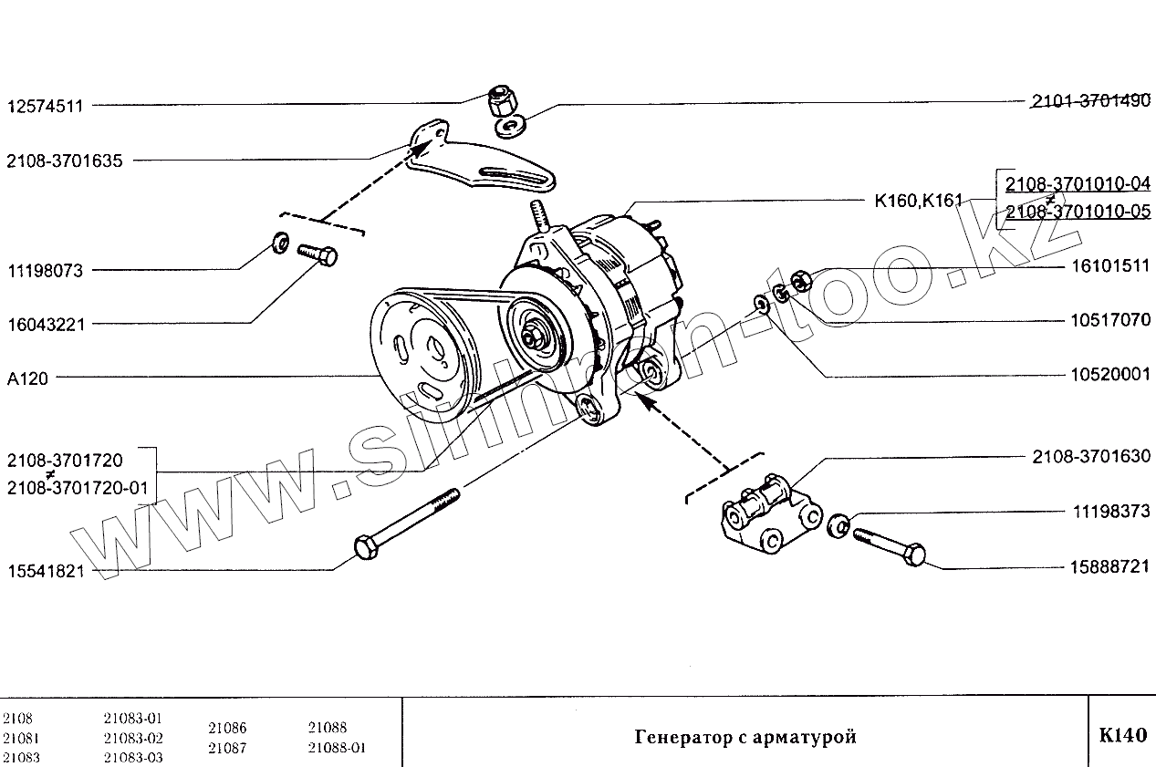 Каталог запасных частей к технике: ВАЗ-2108. Генератор с арматурой