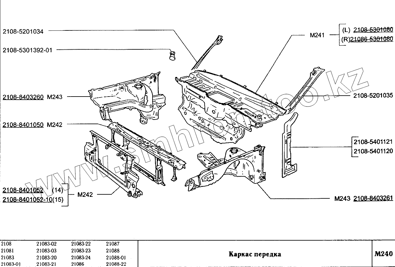 Каталог запасных частей к технике: ВАЗ-2108. Каркас передка