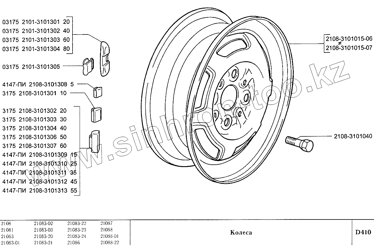 Каталог запасных частей к технике: ВАЗ-2108. Колеса