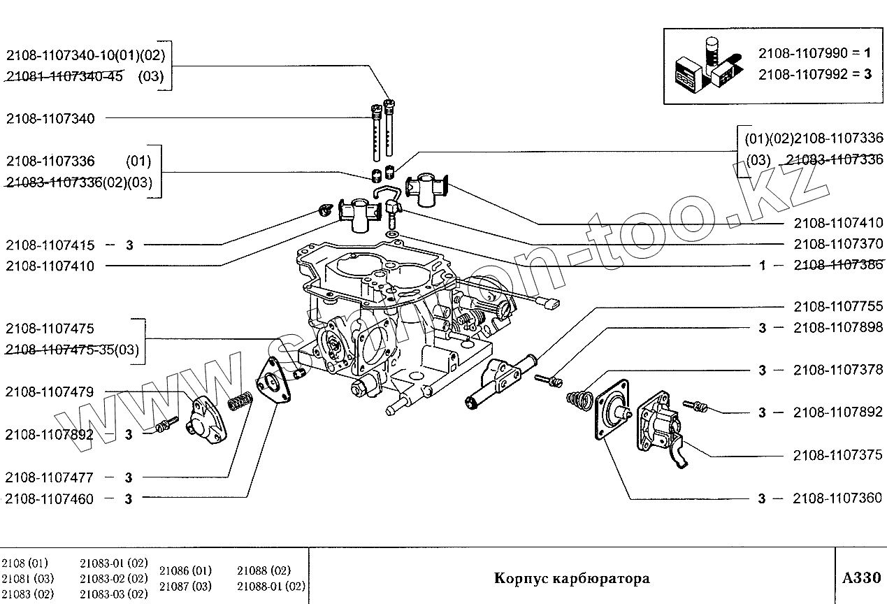 Каталог запасных частей к технике: ВАЗ-2108. Корпус карбюратора