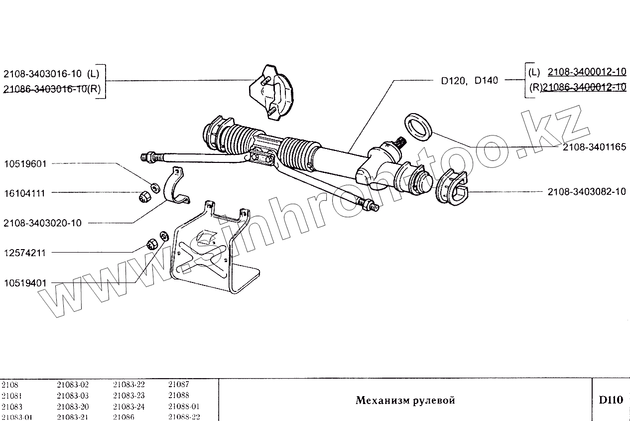 Каталог запасных частей к технике: ВАЗ-2108. Механизм рулевой
