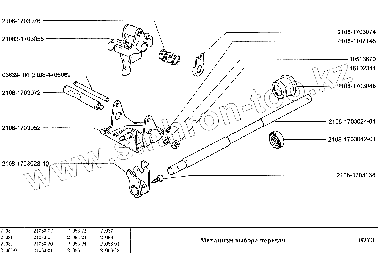 Каталог запасных частей к технике: ВАЗ-2108. Механизм выбора передач