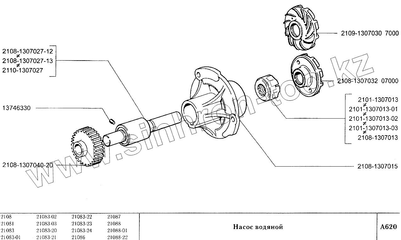 Каталог запасных частей к технике: ВАЗ-2108. Насос водяной