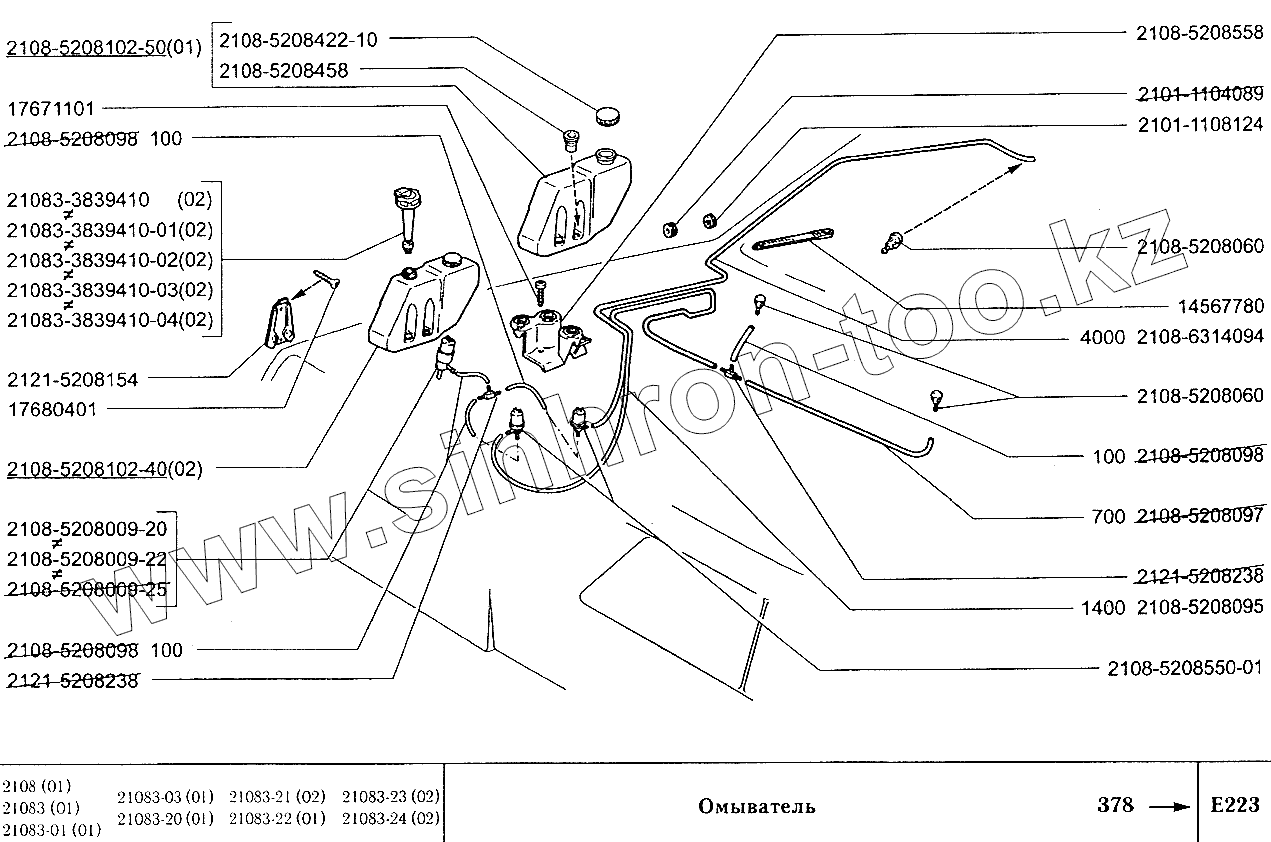 Каталог запасных частей к технике: ВАЗ-2108. Омыватель