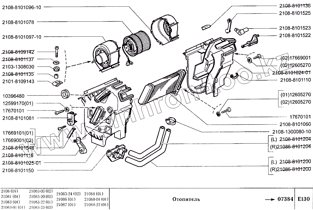 Каталог запасных частей к технике: ВАЗ-2108. Отопитель