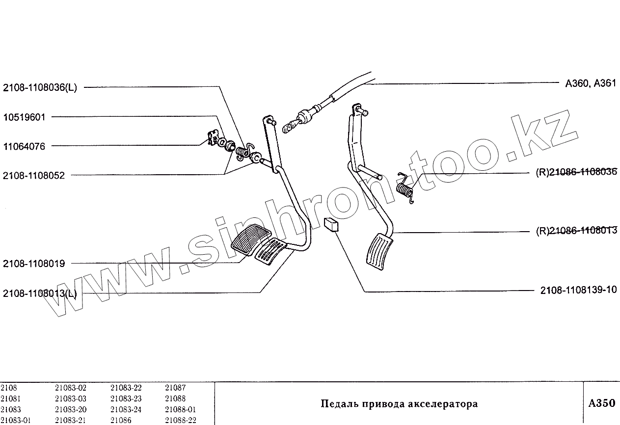 Каталог запасных частей к технике: ВАЗ-2108. Педаль привода акселератора