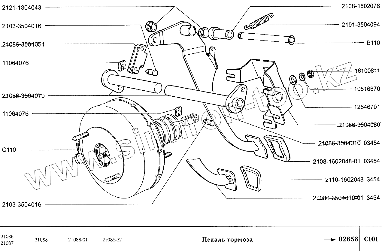 Каталог запасных частей к технике: ВАЗ-2108. Педаль тормоза