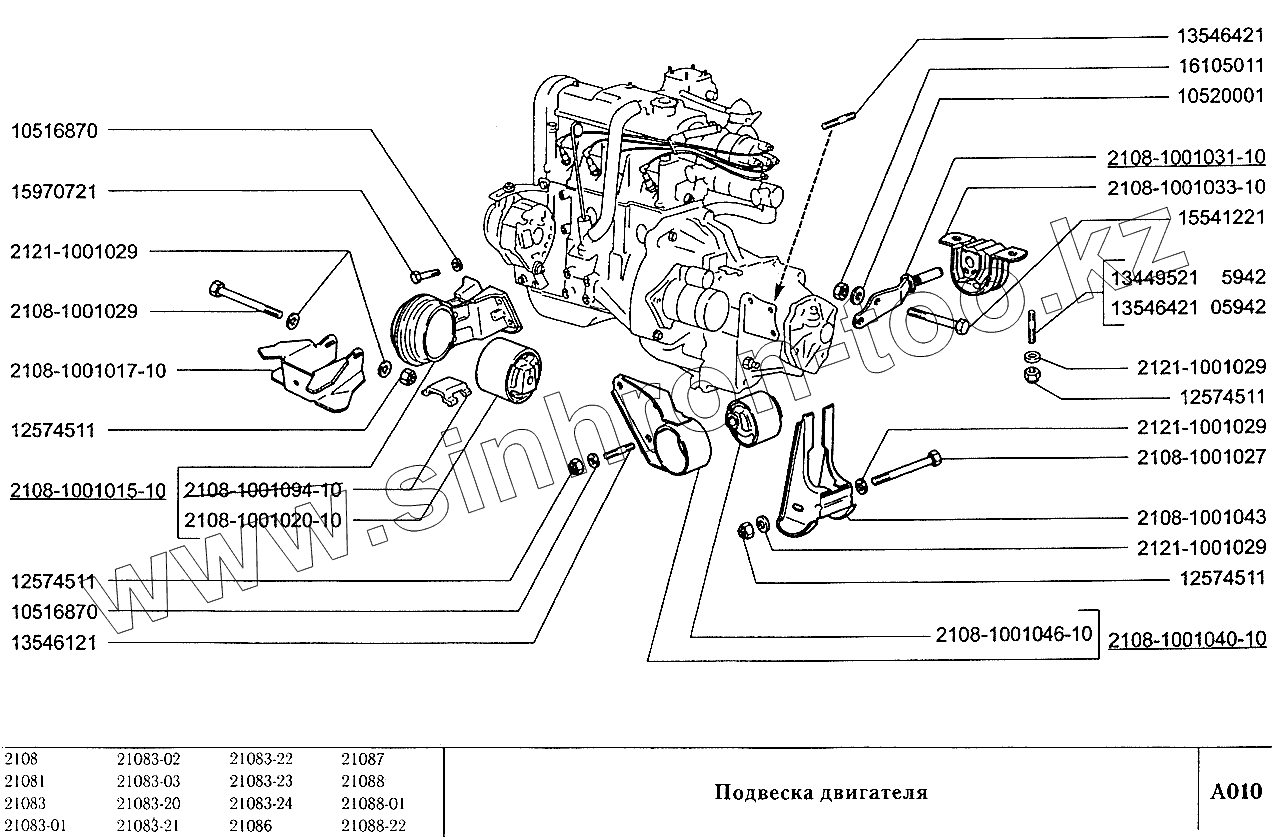 Каталог запасных частей к технике: ВАЗ-2108. Подвеска двигателя