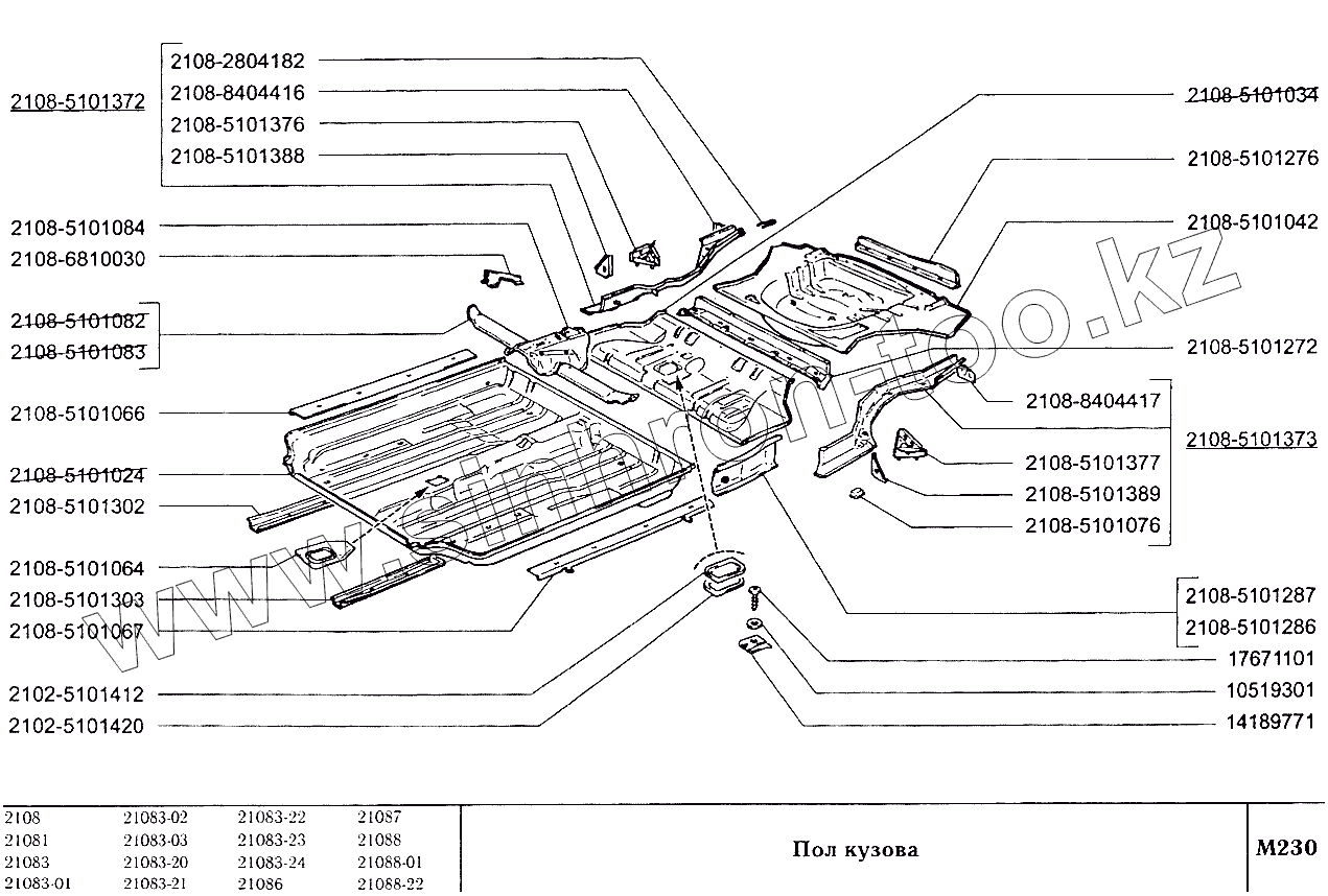 Каталог запасных частей к технике: ВАЗ-2108. Пол кузова