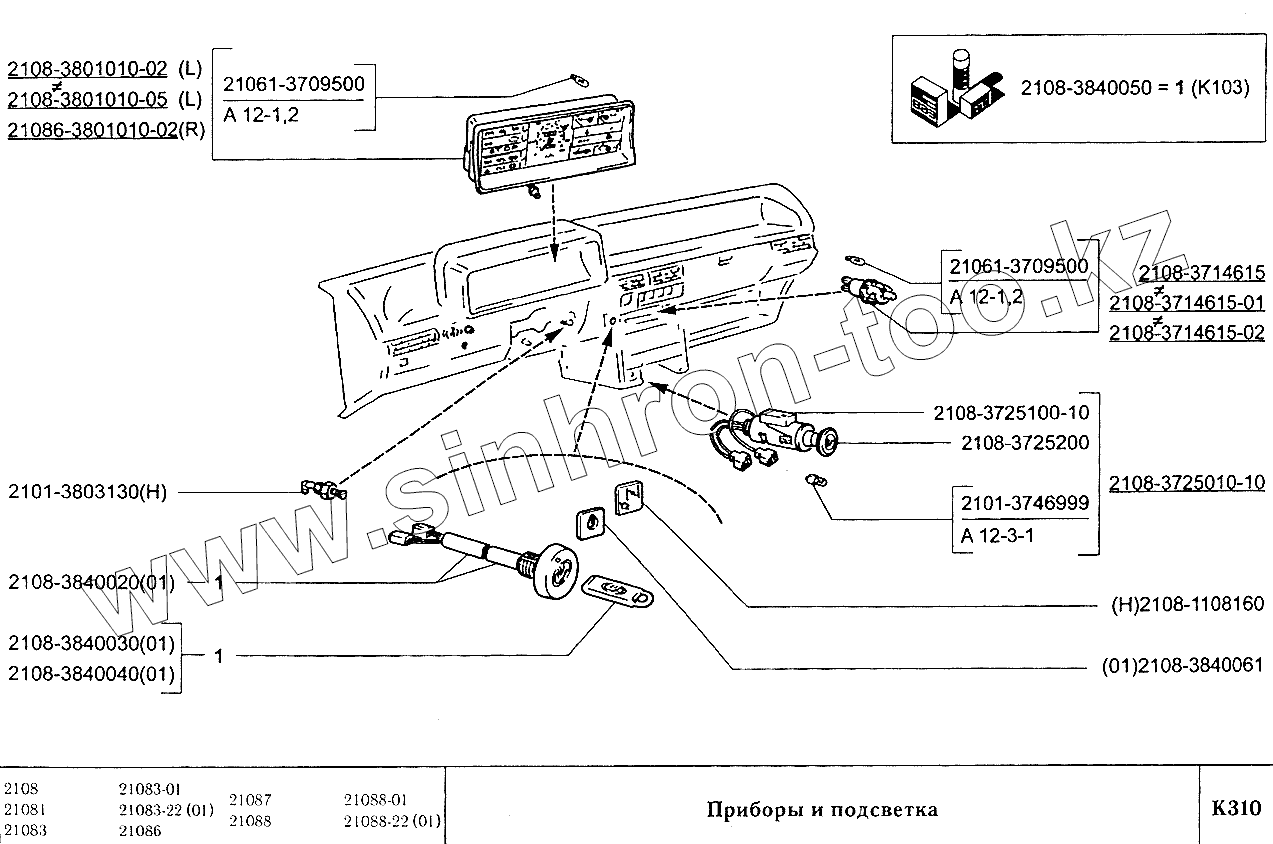 Каталог запасных частей к технике: ВАЗ-2108. Приборы и подсветка