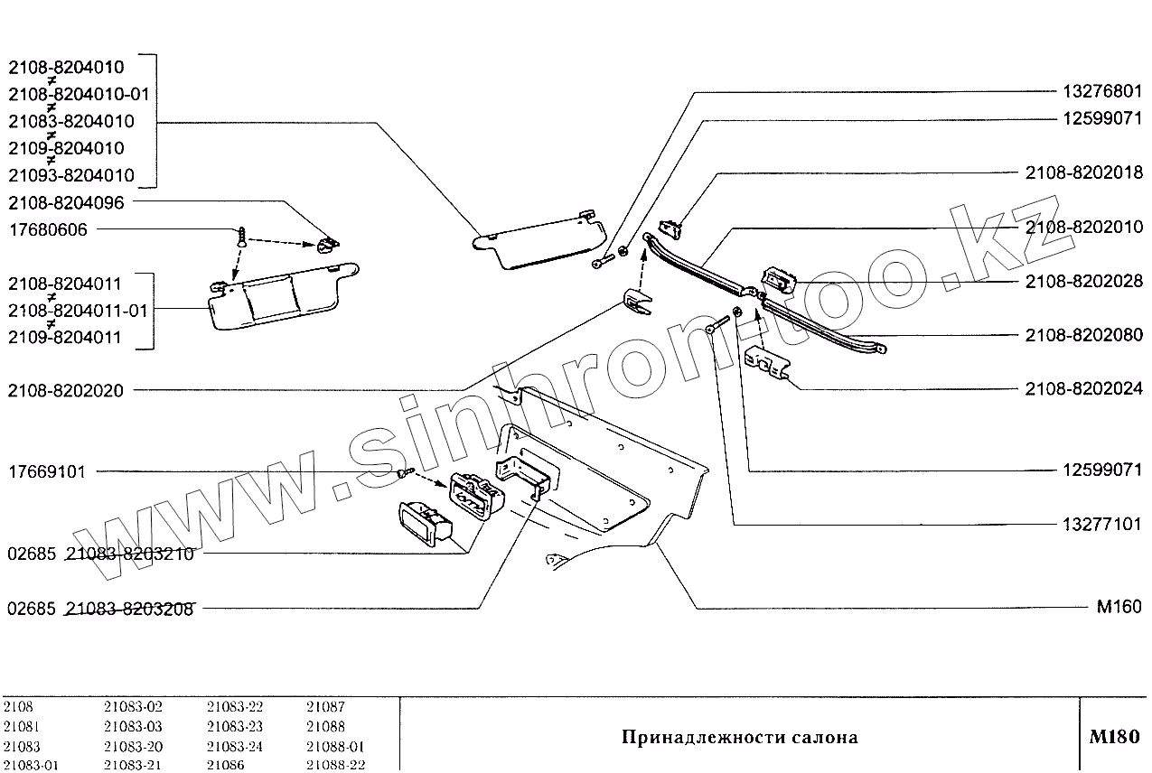 Каталог запасных частей к технике: ВАЗ-2108. Принадлежности салона