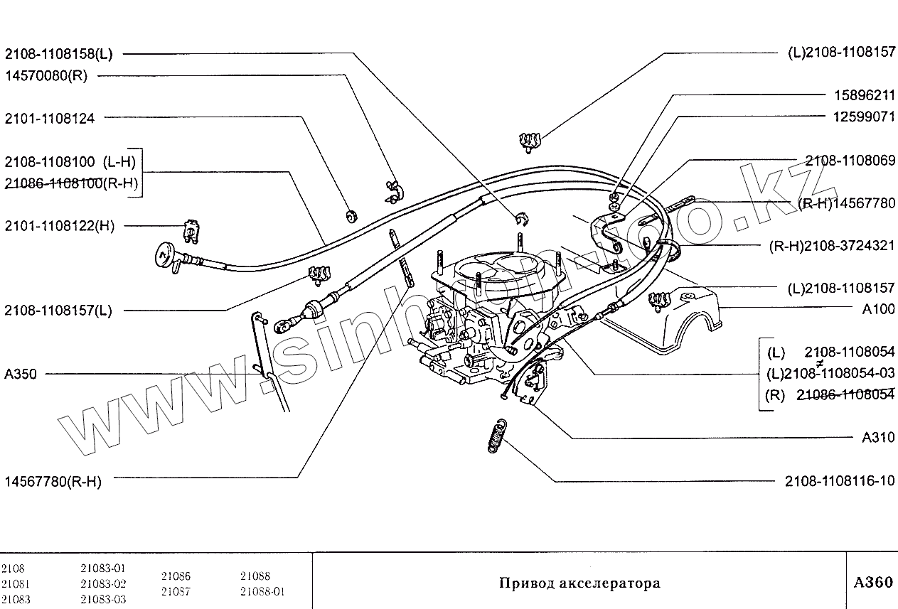 Каталог запасных частей к технике: ВАЗ-2108. Привод акселератора