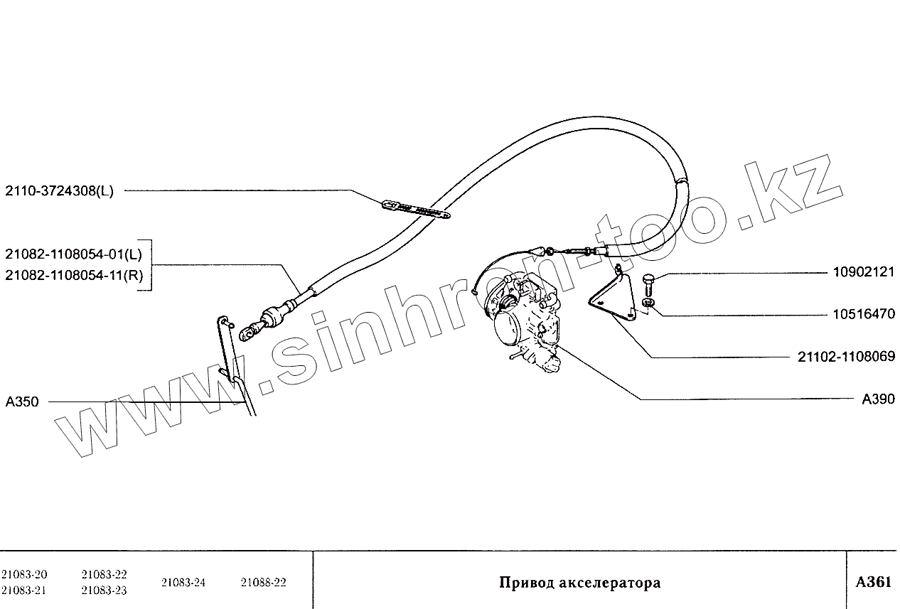 Каталог запасных частей к технике: ВАЗ-2108. Привод акселератора