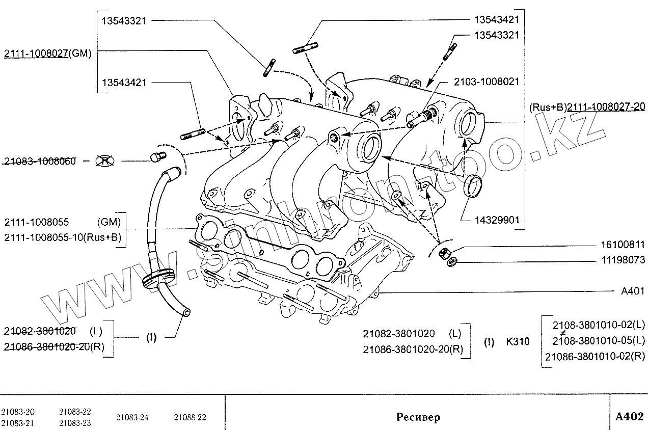 Каталог запасных частей к технике: ВАЗ-2108. Ресивер