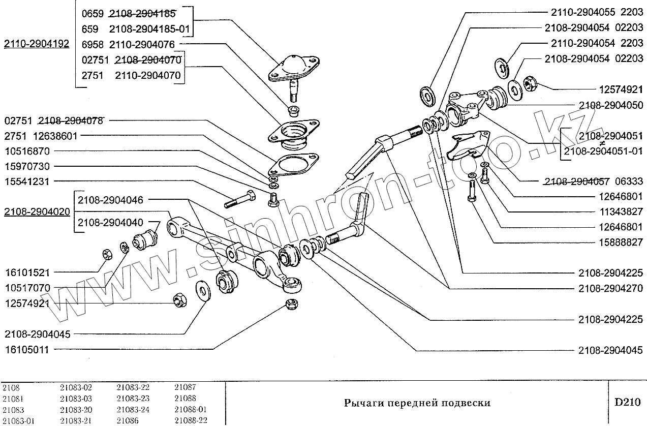 Каталог запасных частей к технике: ВАЗ-2108. Рычаги передней подвески