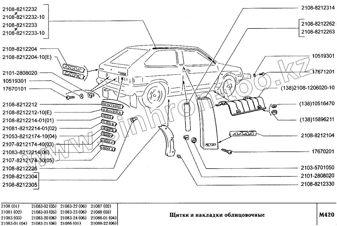 Каталог запасных частей к технике: ВАЗ-2108. Щитки накладки облицовочные