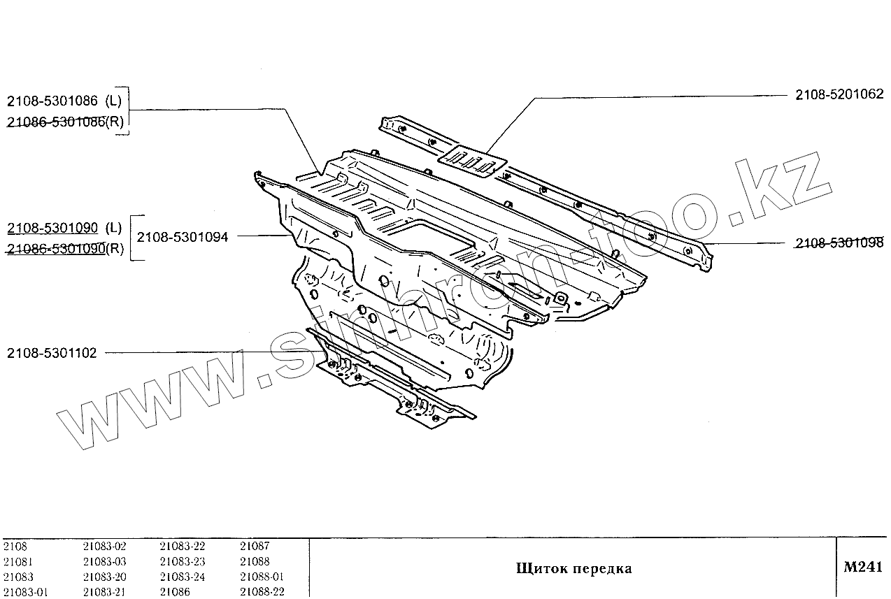 Каталог запасных частей к технике: ВАЗ-2108. Щиток передка