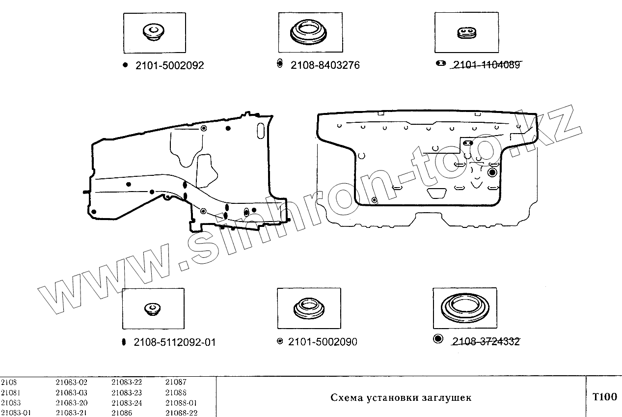 Каталог запасных частей к технике: ВАЗ-2108. Схема установки заглушек