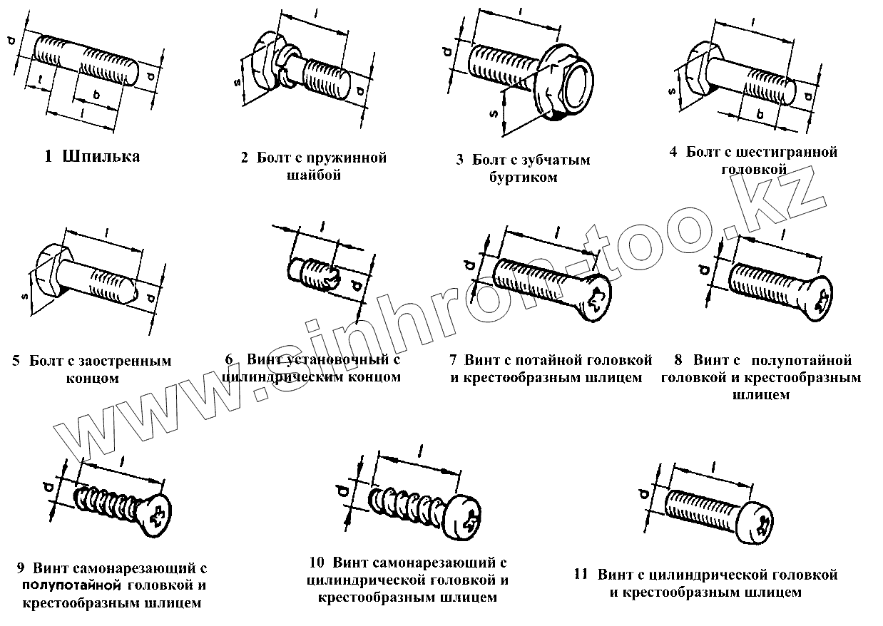 Каталог запасных частей к технике: ВАЗ-2108. Шпильки, болты и винты