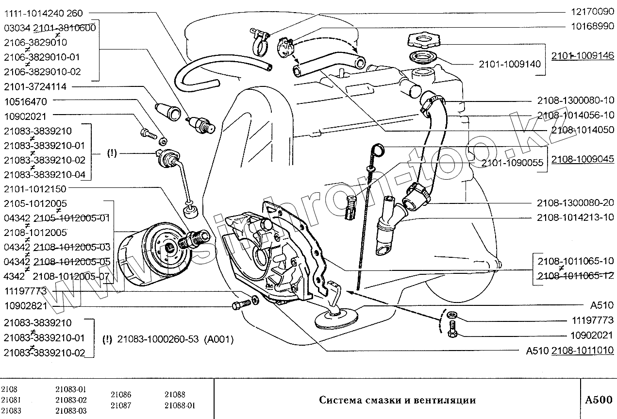 Каталог запасных частей к технике: ВАЗ-2108. Система смазки и вентиляции