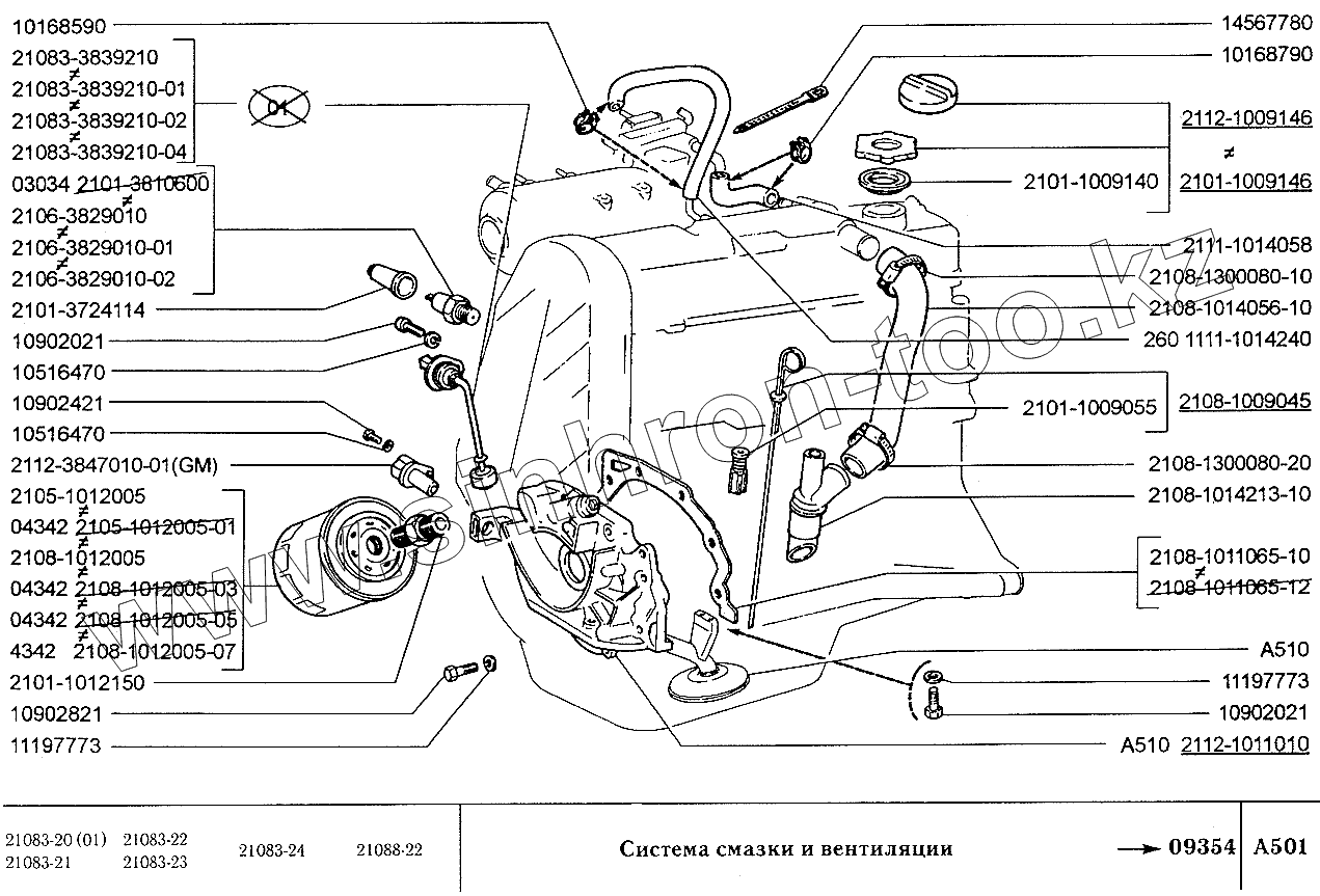 Каталог запасных частей к технике: ВАЗ-2108. Система смазки и вентиляции