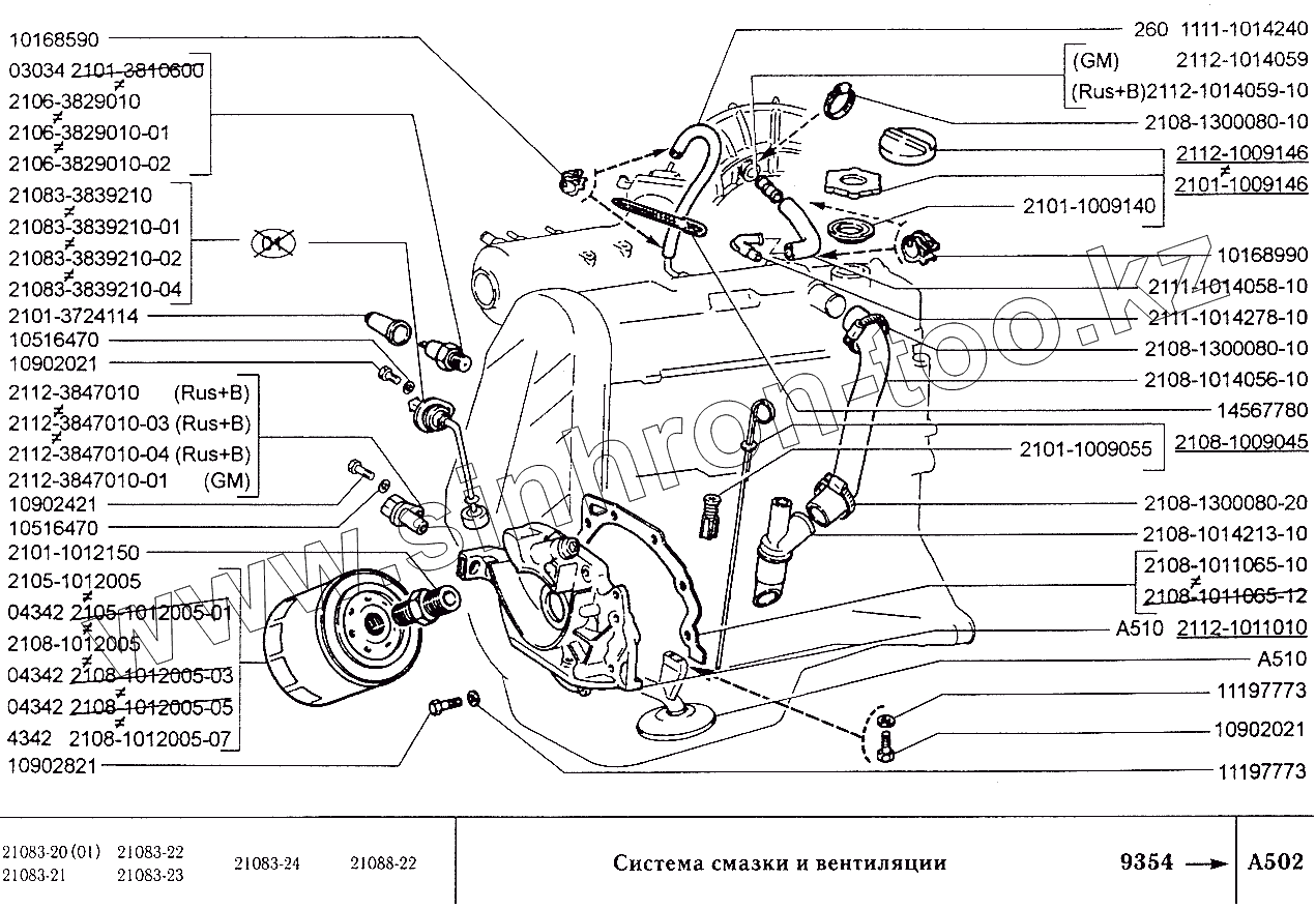 Каталог запасных частей к технике: ВАЗ-2108. Система смазки и вентиляции