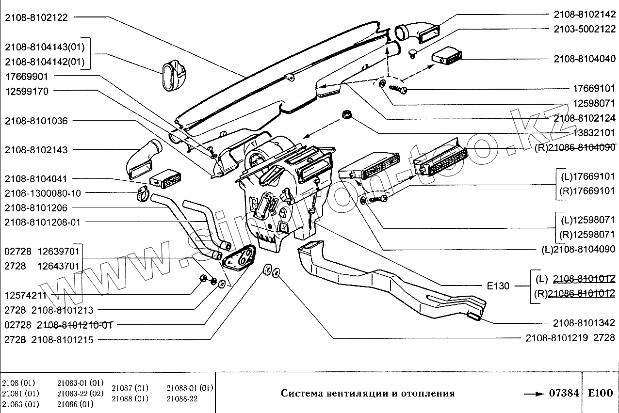 Каталог запасных частей к технике: ВАЗ-2108. Система вентиляции и отопления