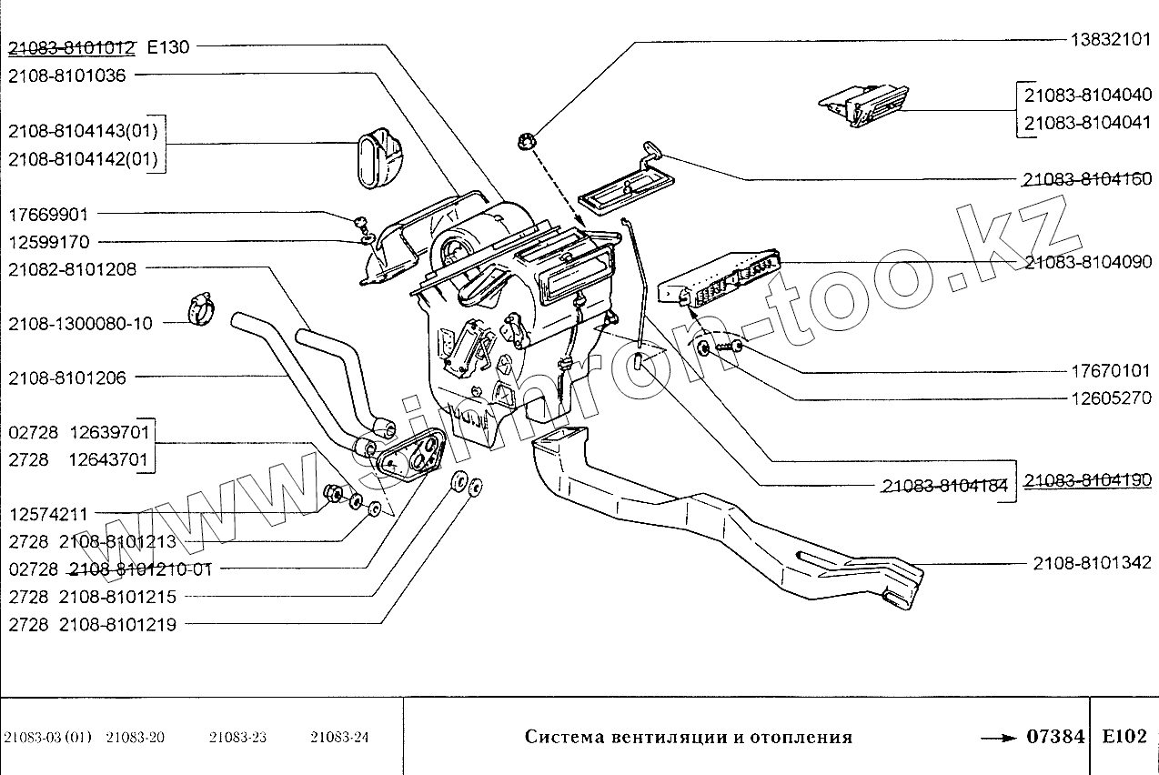 Каталог запасных частей к технике: ВАЗ-2108. Система вентиляции и отопления