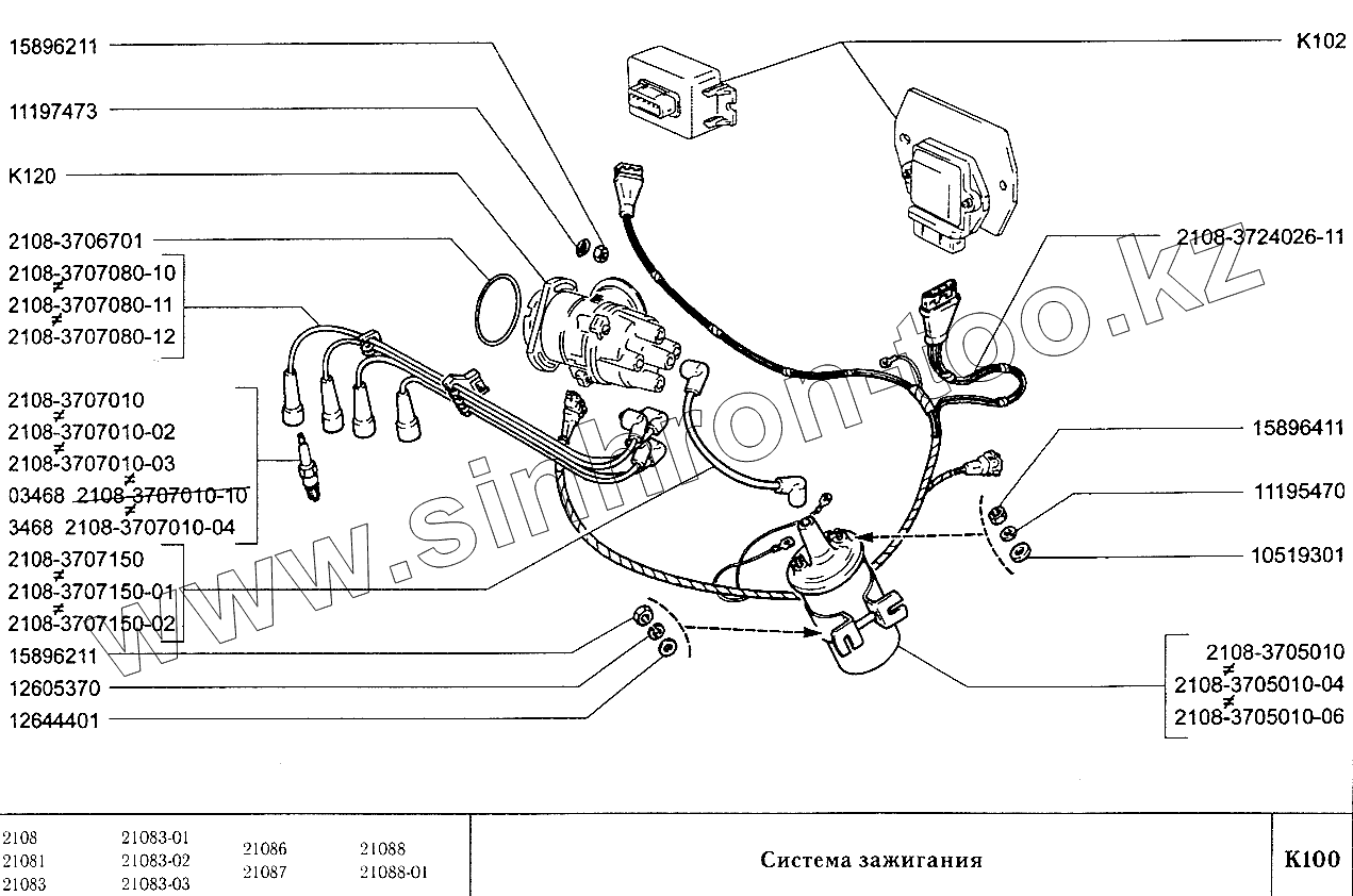 Каталог запасных частей к технике: ВАЗ-2108. Система зажигания