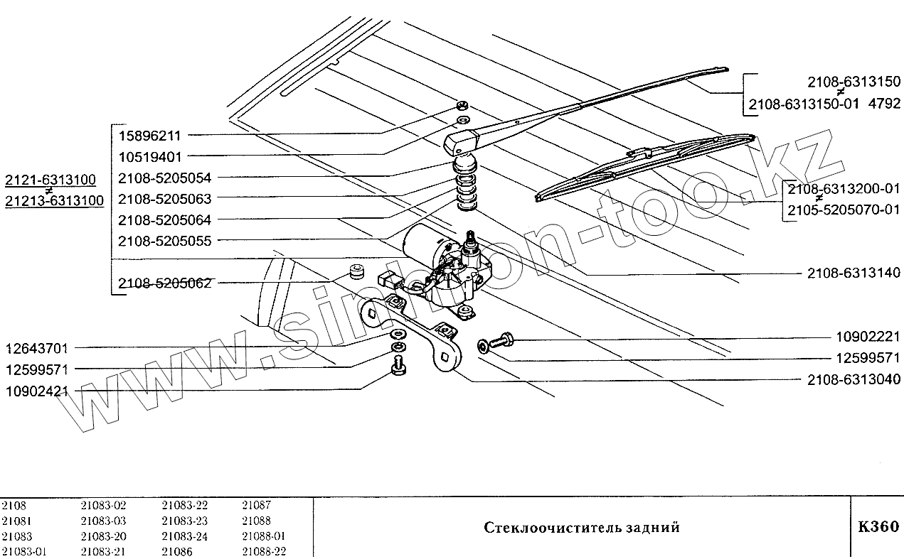 Каталог запасных частей к технике: ВАЗ-2108. Стеклоочиститель задний