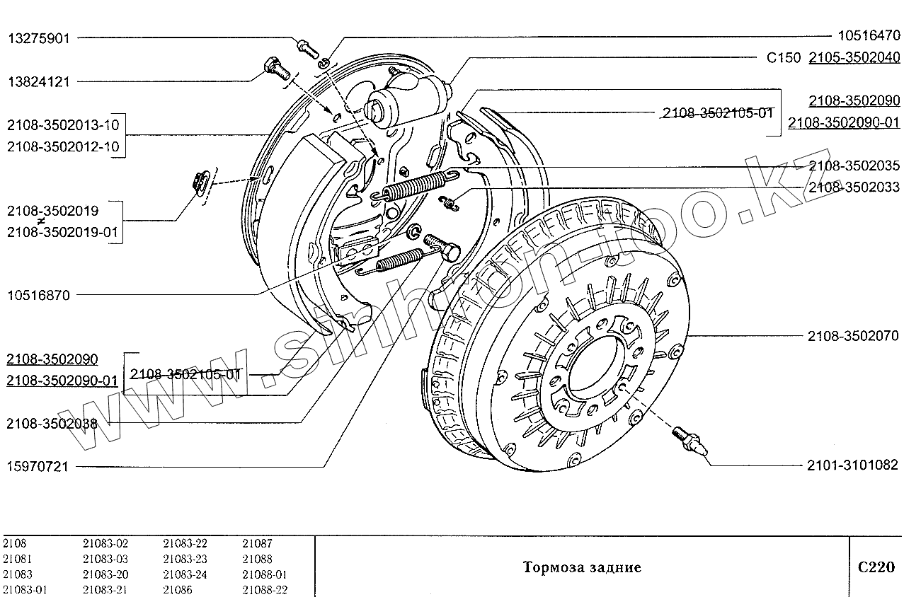 Каталог запасных частей к технике: ВАЗ-2108. Тормоза задние