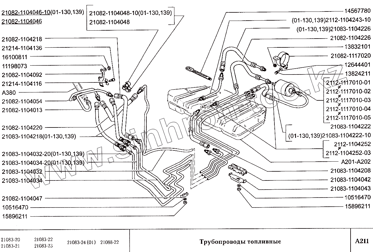 Каталог запасных частей к технике: ВАЗ-2108. Трубопроводы топливные
