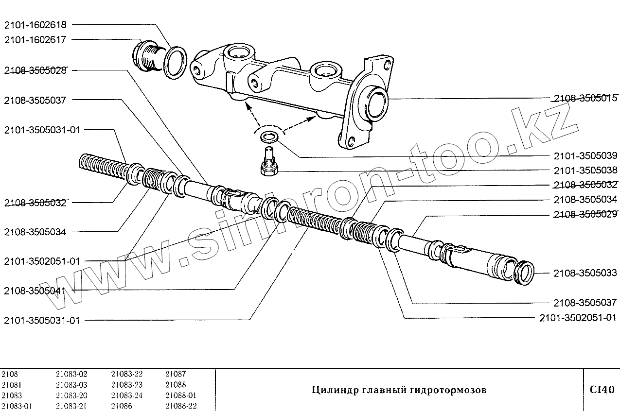 Каталог запасных частей к технике: ВАЗ-2108. Цилиндр главный гидротормозов