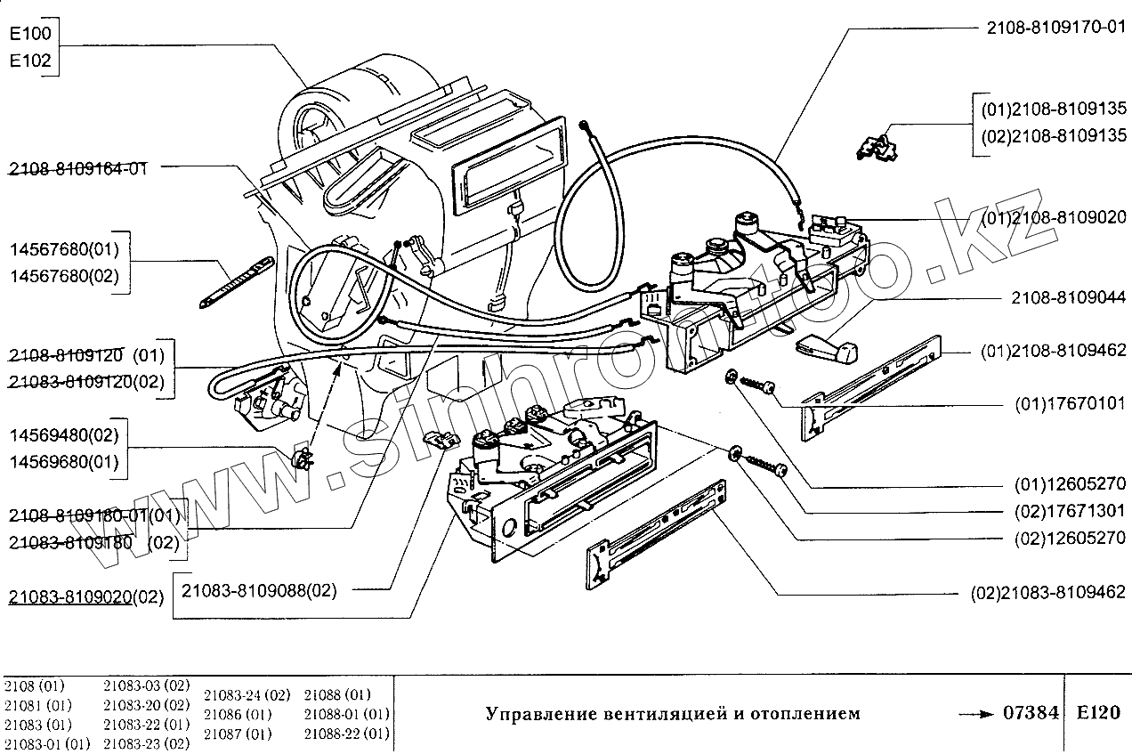 Каталог запасных частей к технике: ВАЗ-2108. Управление вентиляцией и отоплением