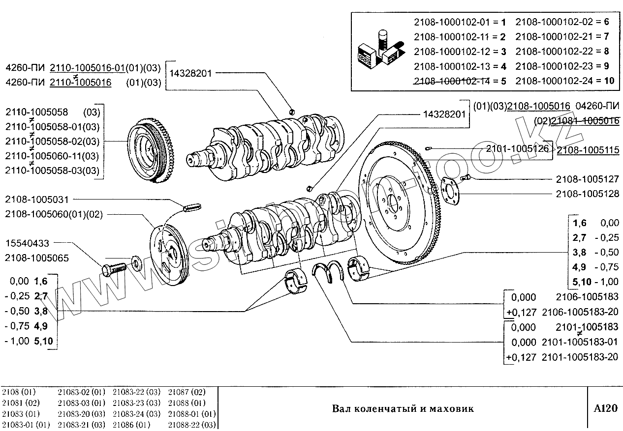 Каталог запасных частей к технике: ВАЗ-2108. Вал коленчатый и маховик