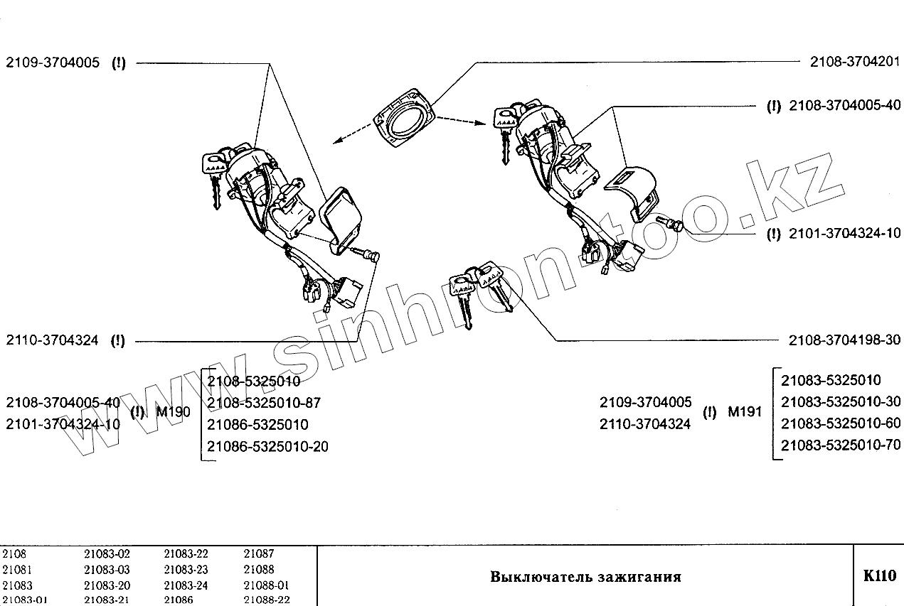 Каталог запасных частей к технике: ВАЗ-2108. Выключатель зажигания