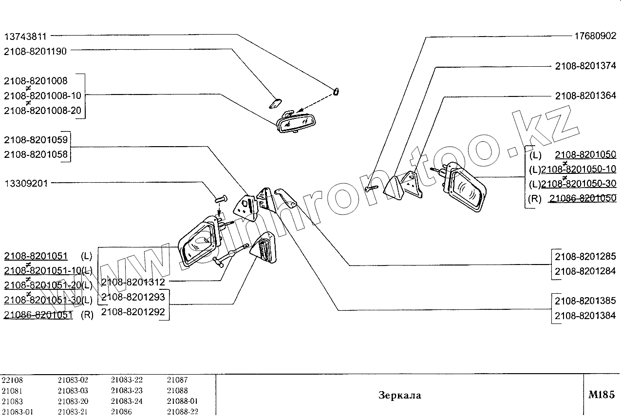 Каталог запасных частей к технике: ВАЗ-2108. Зеркала