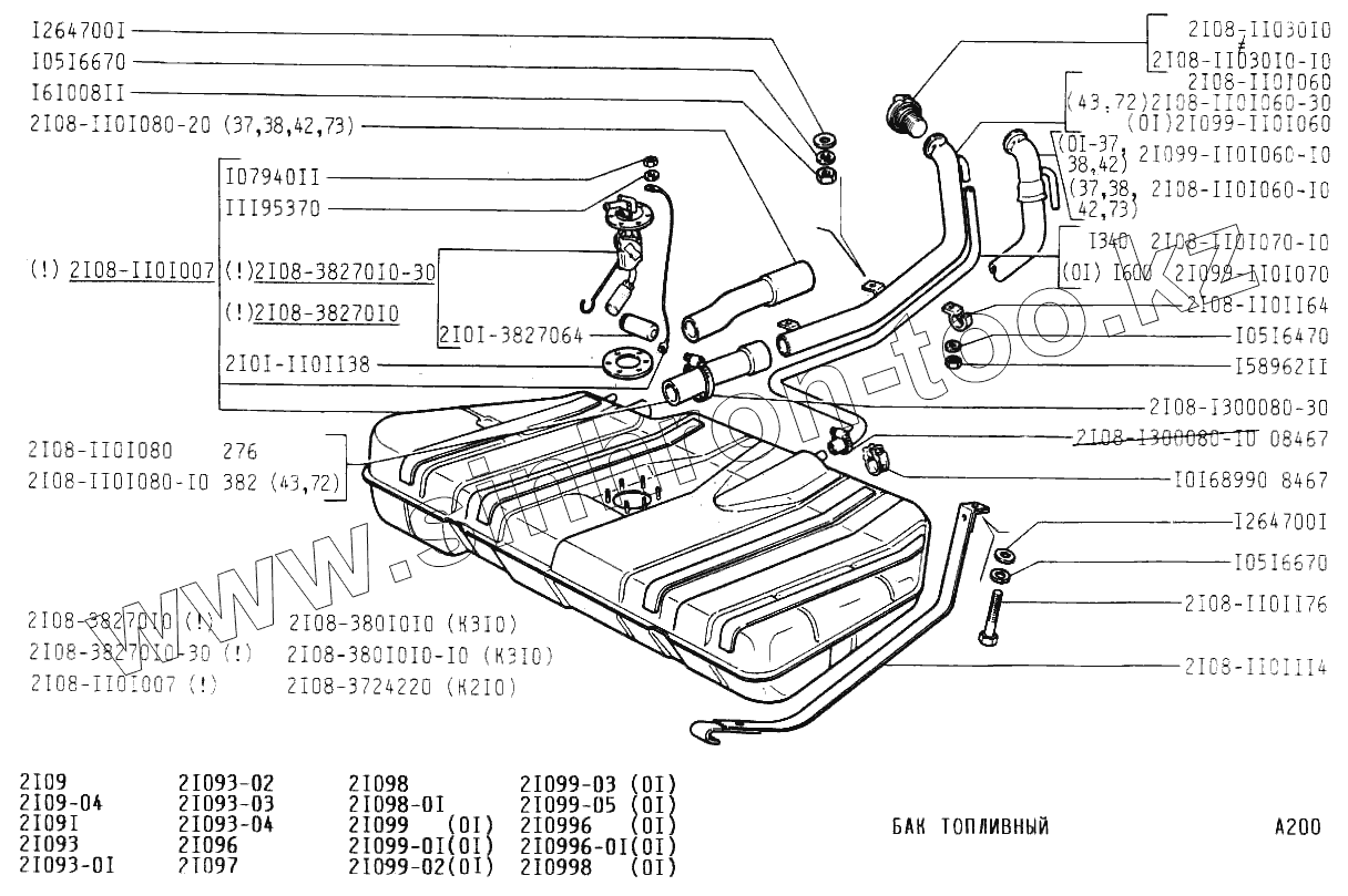 Каталог запасных частей к технике: ВАЗ-21099. Бак топливный