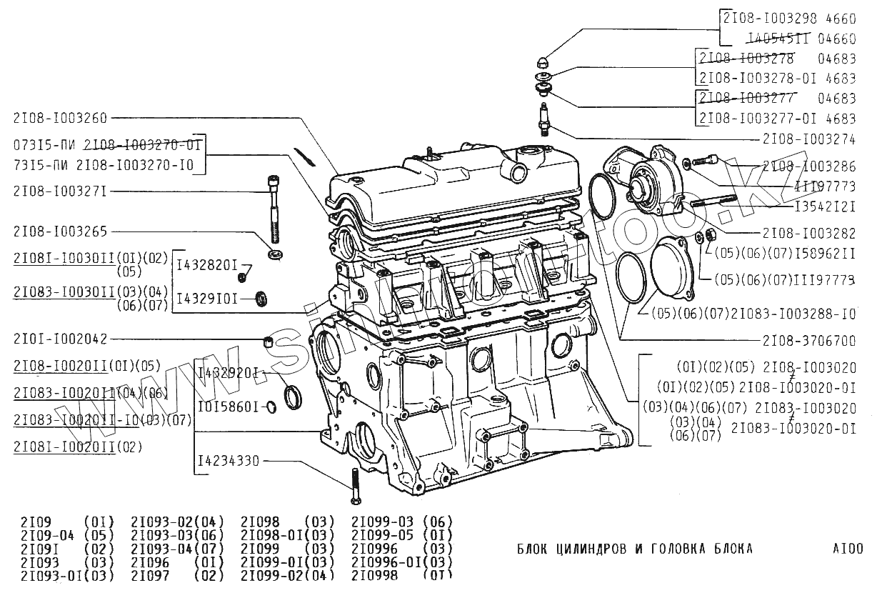 Каталог запасных частей к технике: ВАЗ-21099. Блок цилиндров и головка блока