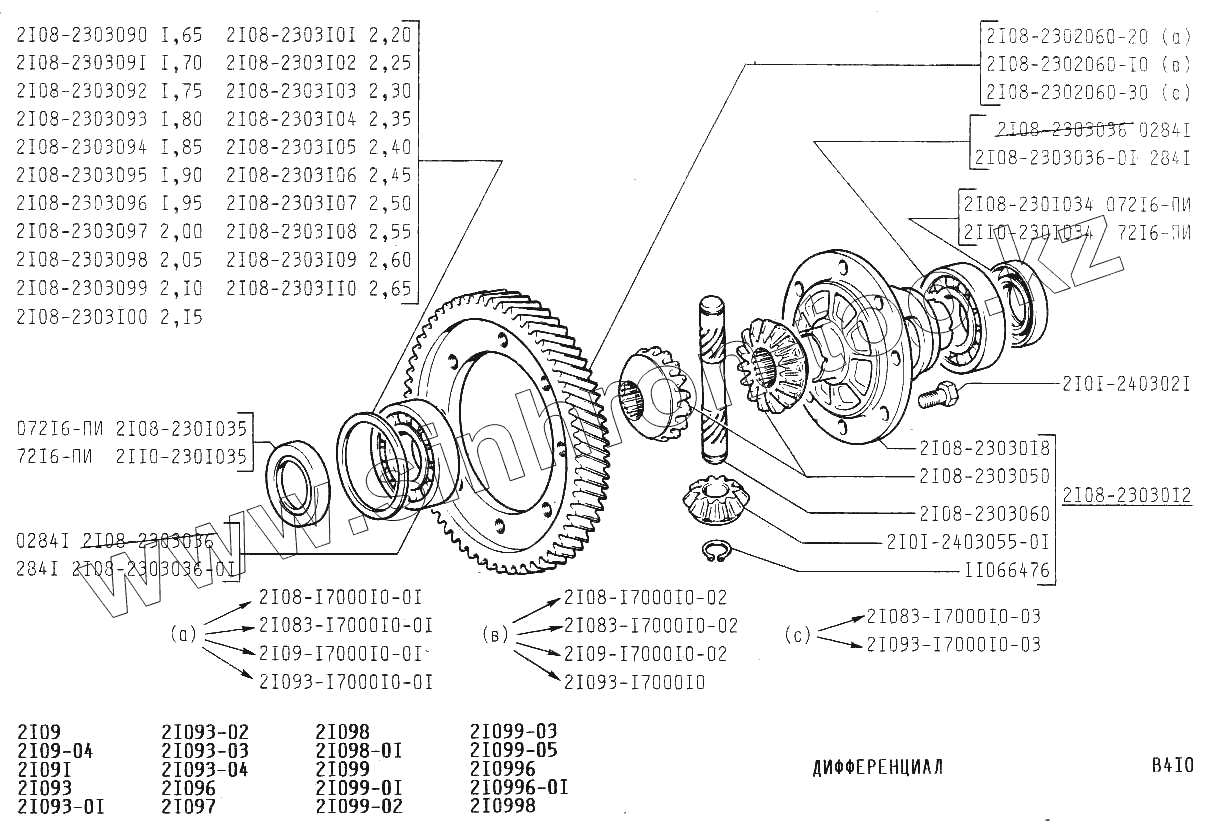 Каталог запасных частей к технике: ВАЗ-21099. Дифференциал