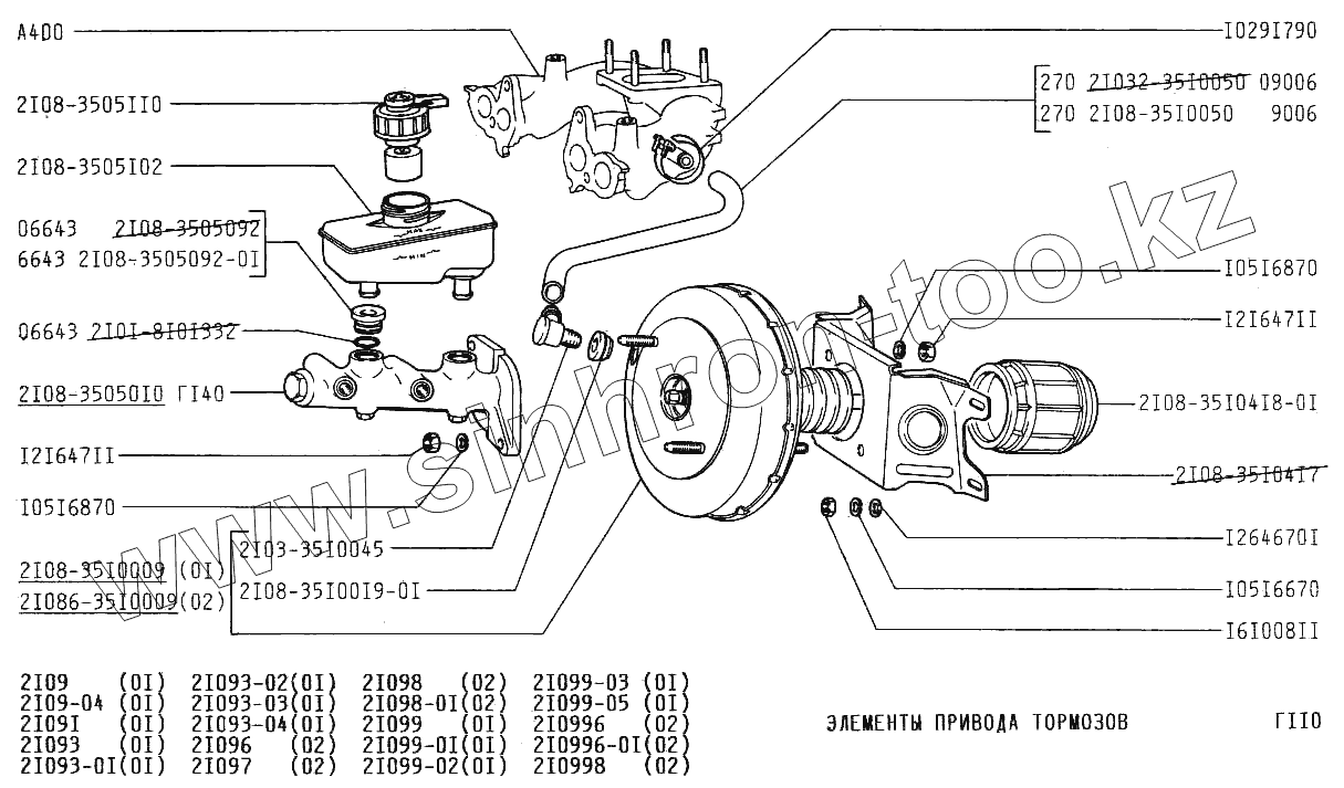 Каталог запасных частей к технике: ВАЗ-21099. Элементы привода тормозов