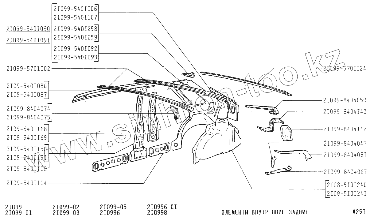 Каталог запасных частей к технике: ВАЗ-21099. Элементы внутренние задние