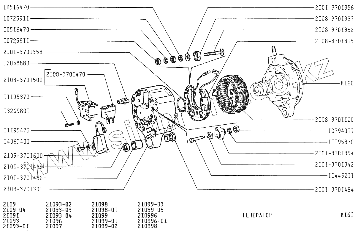 Каталог запасных частей к технике: ВАЗ-21099. Генератор