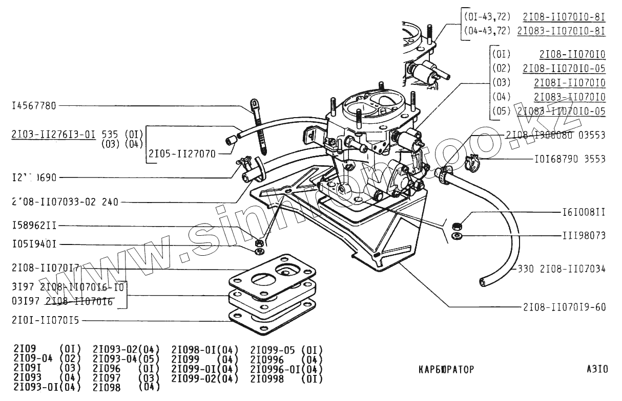 Каталог запасных частей к технике: ВАЗ-21099. Карбюратор