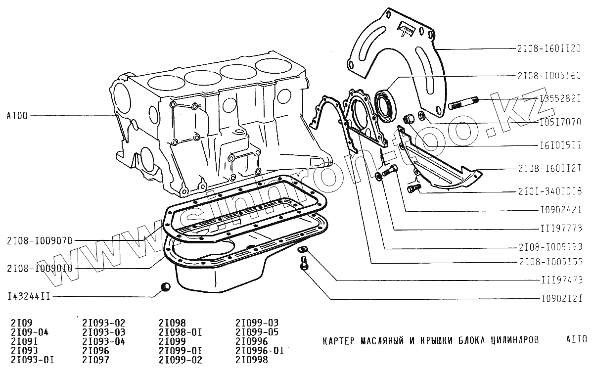 Каталог запасных частей к технике: ВАЗ-21099. Картер масляный и крышка блока