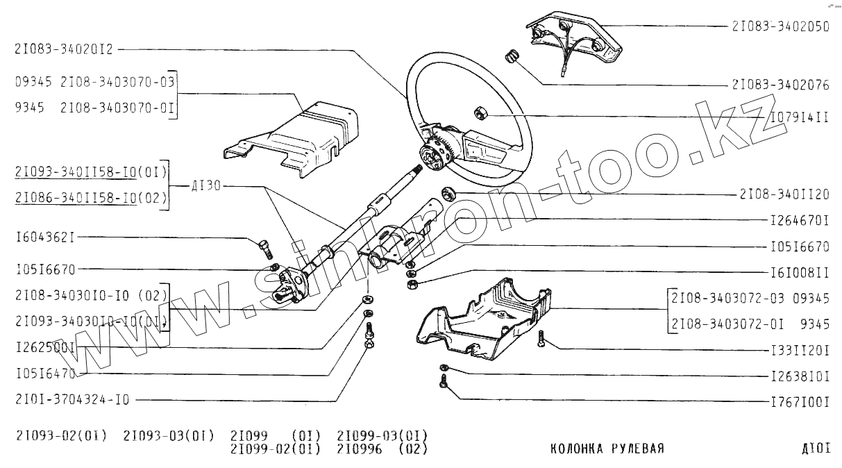 Каталог запасных частей к технике: ВАЗ-21099. Колонка рулевая