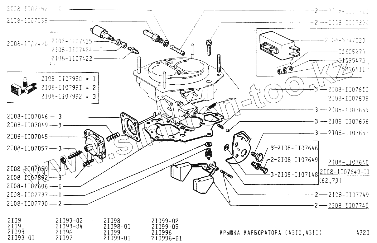 Каталог запасных частей к технике: ВАЗ-21099. Крышка карбюратора (А310, А311)