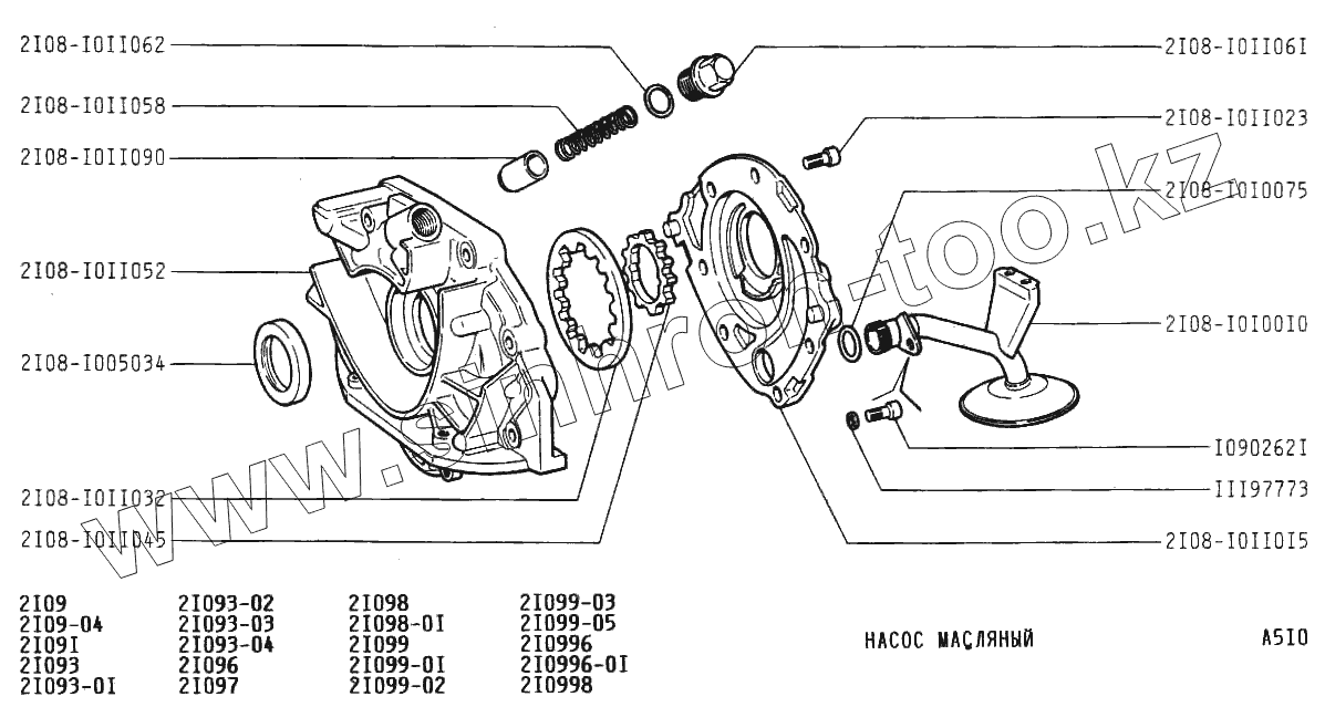 Каталог запасных частей к технике: ВАЗ-21099. Насос масляный