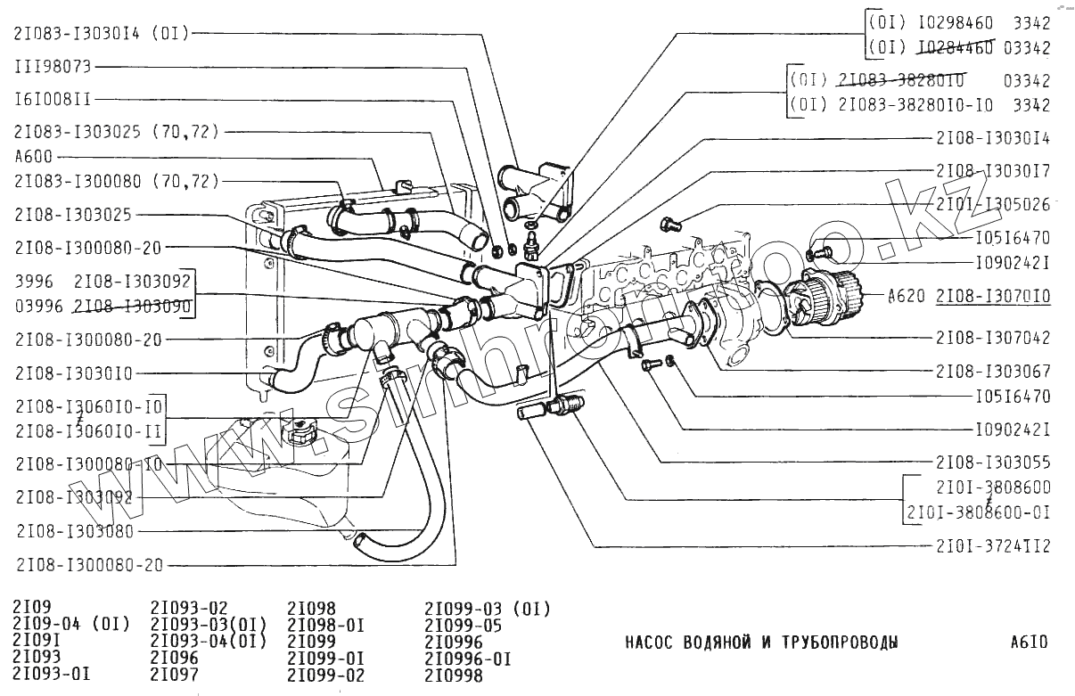 Каталог запасных частей к технике: ВАЗ-21099. Насос водяной и трубопроводы
